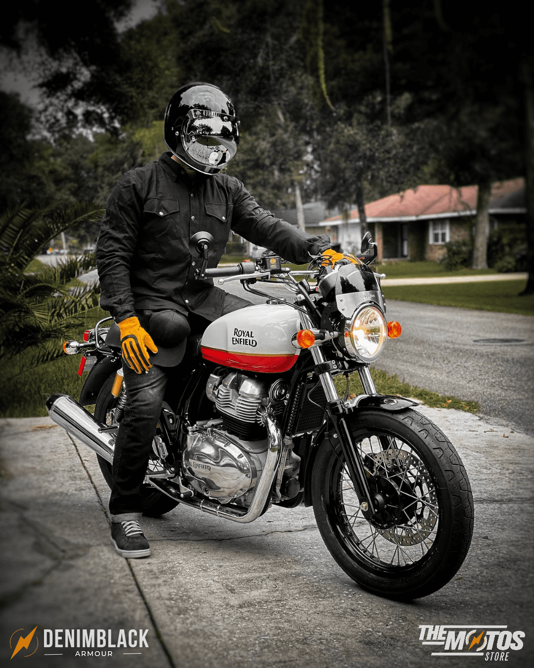 Chaqueta de moto urbana en denim reforzado, con capa térmica removible, diseñada para adaptarse a distintos climas, para uso diario con protecciones certificadas CE y un look clásico y atemporal.